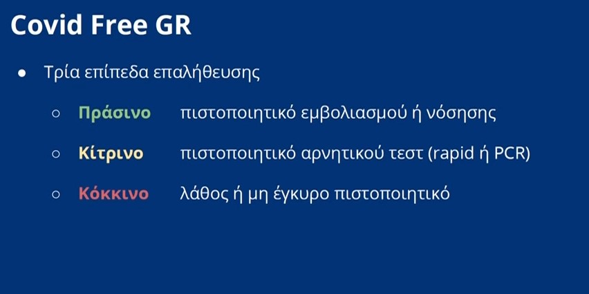 των Ευρωπαϊκών Ψηφιακών Πιστοποιητικών COVID καθώς και των ελληνικών βεβαιώσεων